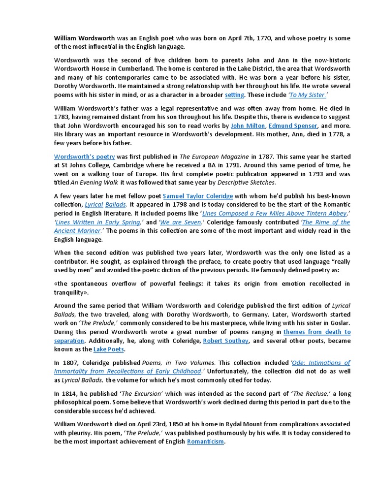 Setting: To My Sister PDF William Wordsworth Samuel Taylor Coleridge