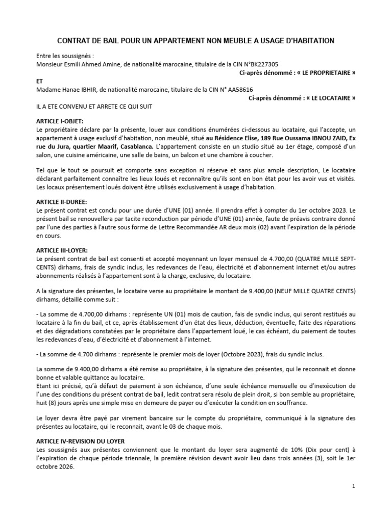 Contrat de Location Esmili IBHIR Version 22 SEPT 23 PDF