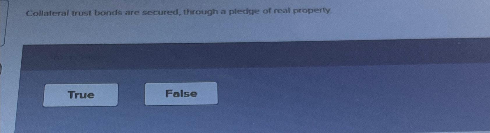 Solved Collateral trust bonds are secured through a pledge Chegg com