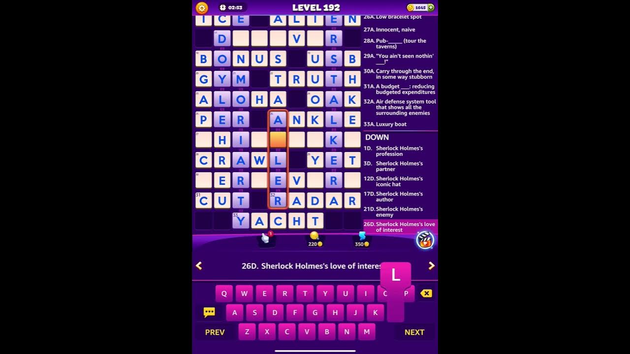 Word Hike Level 192 England Spock Sherrinford Crossword Puzzle Game