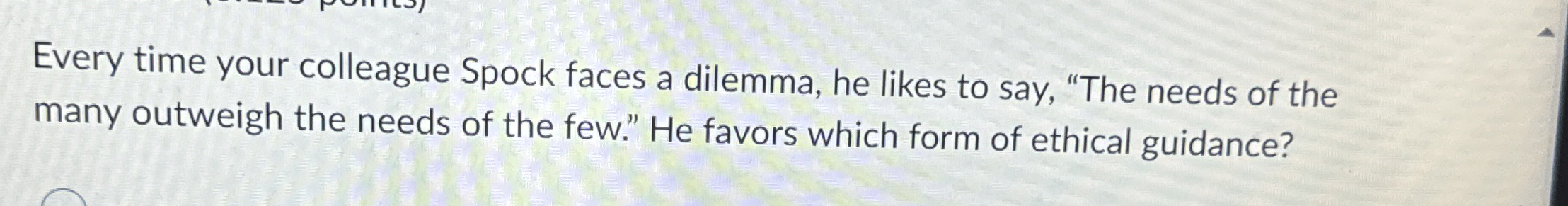 Solved Every time your colleague Spock faces a dilemma he Chegg com