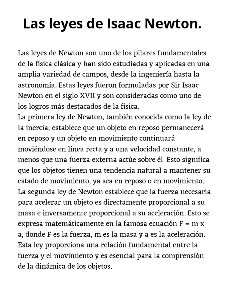 Fundamentos de las Leyes de Newton PDF Fuerza Las leyes del