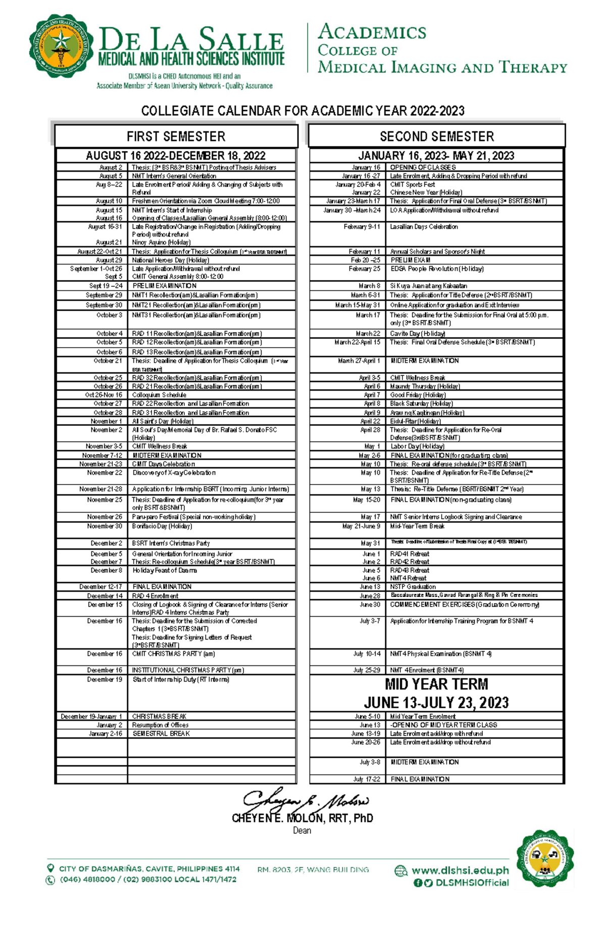 Collegiate School Calendar AY 2022 2023 UNIVERSITY OF SAN AGUSTIN