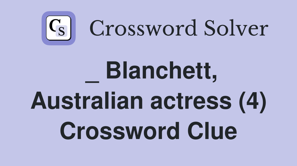 Blanchett Australian actress (4) Crossword Clue Answers