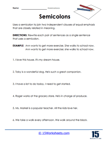 Colons And Semicolons Worksheet