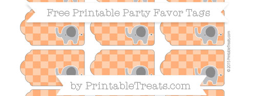 Safety Orange Checker Pattern Elephant Party Favor Tags Printable