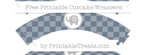 Slate Grey Checker Pattern Baby Elephant Cupcake Wrappers Printable