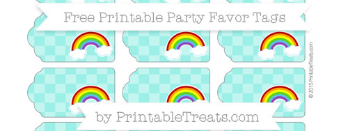 Turquoise Checker Pattern Rainbow Party Favor Tags Printable Treats com