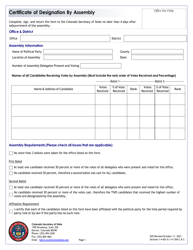 Colorado Certificate of Designation by Assembly Download Printable PDF