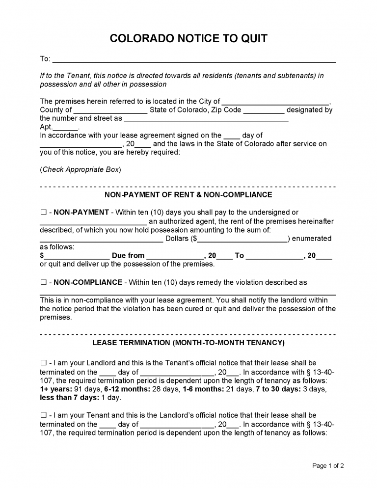 Free Colorado Notice to Quit PDF Template ≡ SafeInet