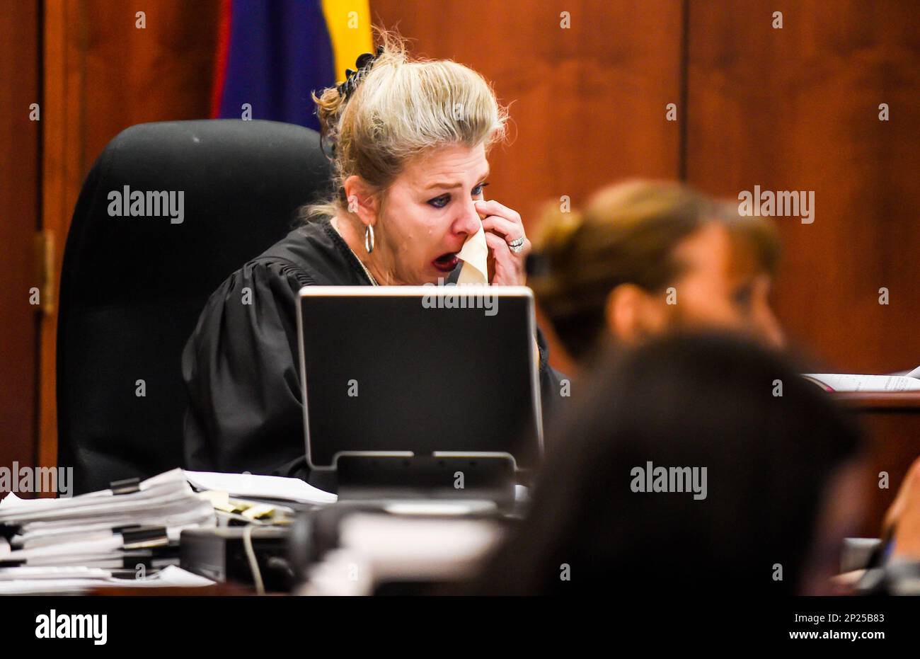 Fourth Judicial District Court Judge Jann DuBois gets emotional as she