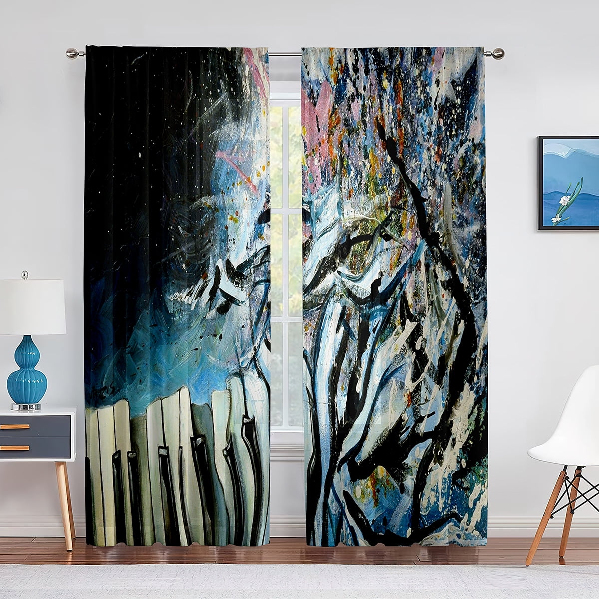 Abstract Oil Painting Colored Tulle Voile Curtains for Bedroom Window