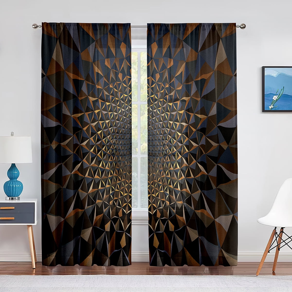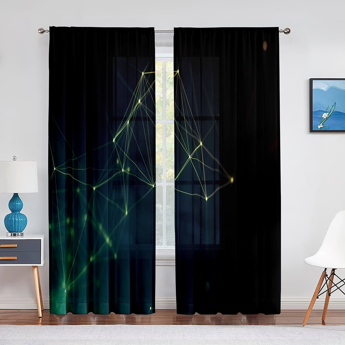 Colored Geometric Circles Stripes Sheer Curtains for Living Room