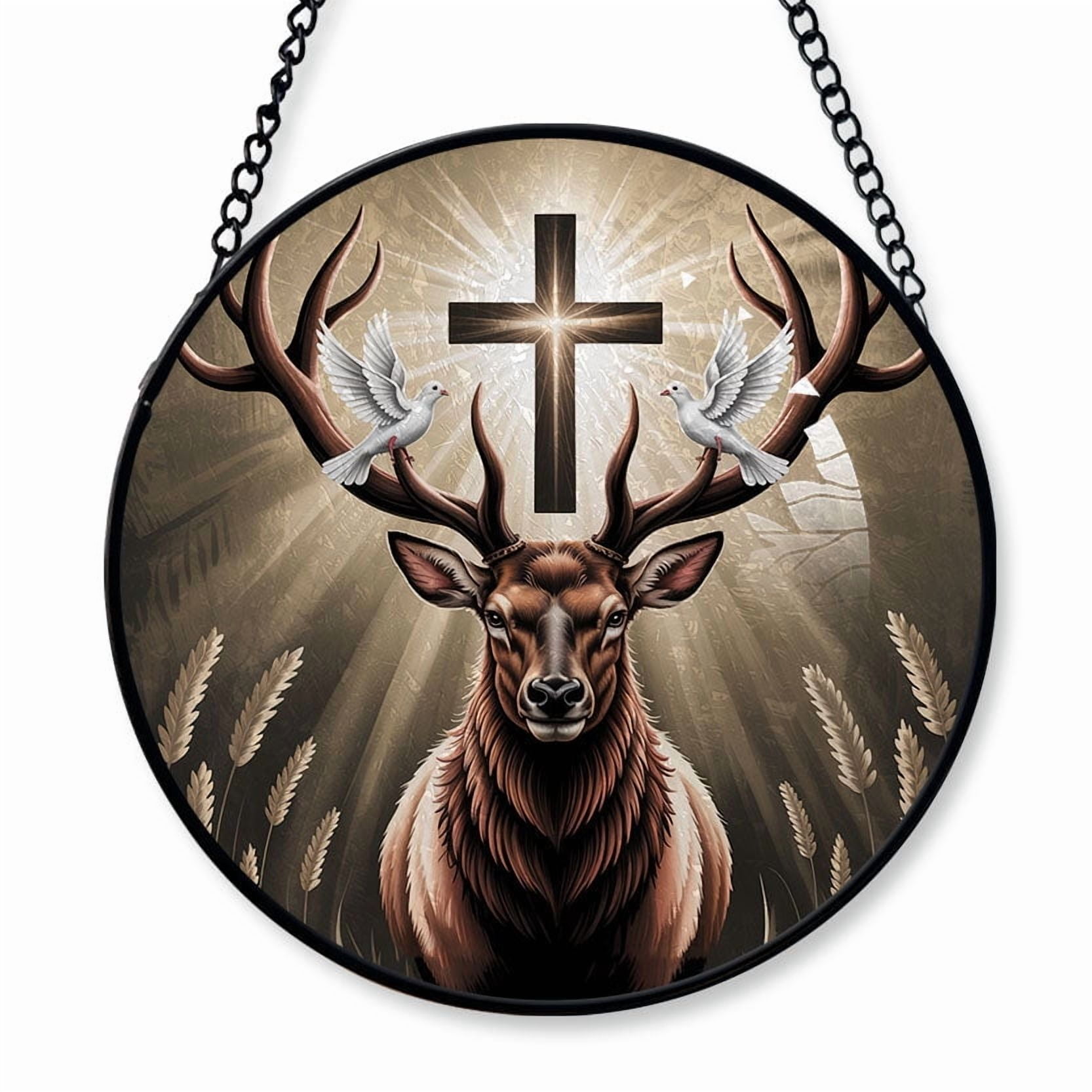 Deer and Irish Cross Stained Glass Sun Catcher Wall Hanging Colored