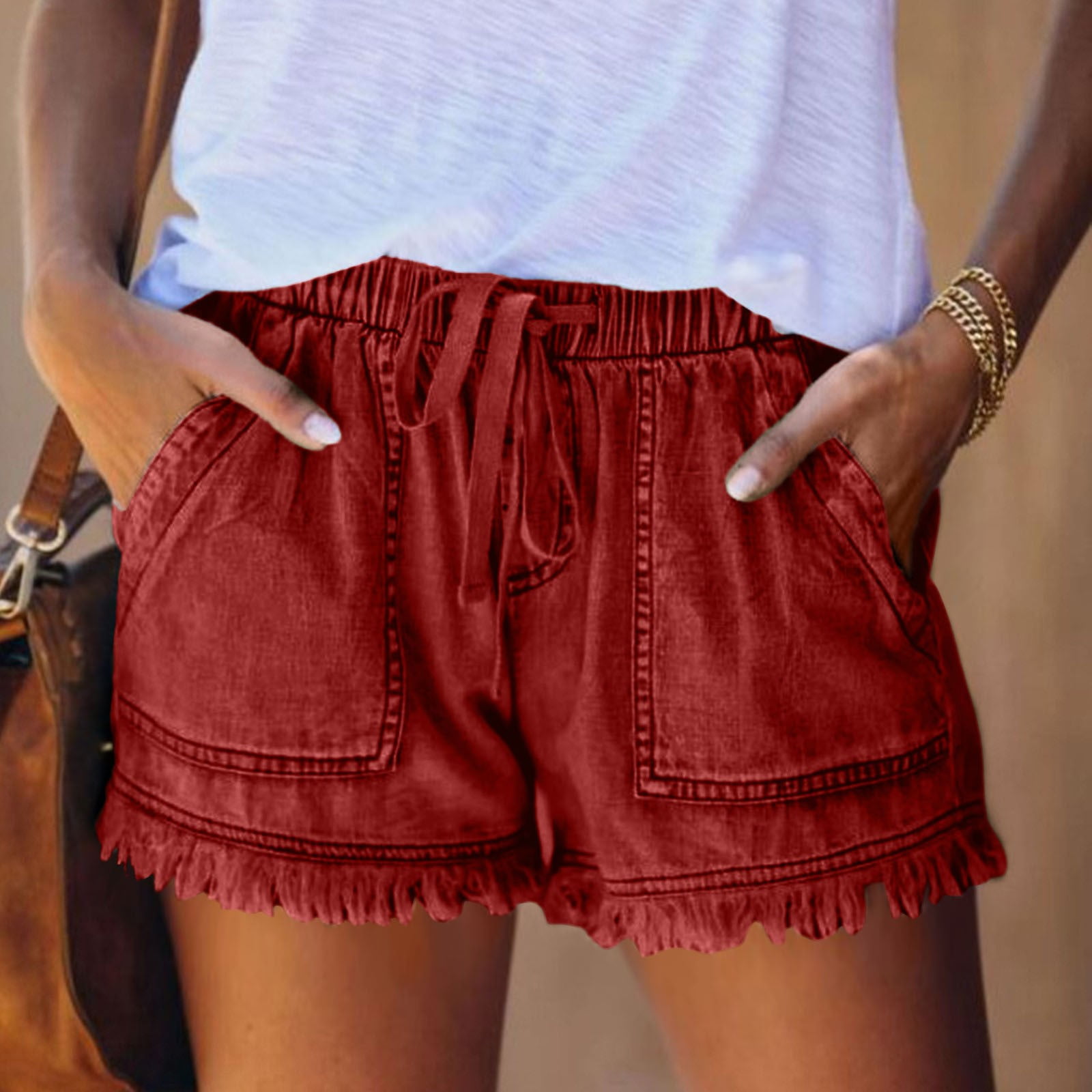 GBSYEWXS Denim Shorts For Women Red Colored Drawstring Waist