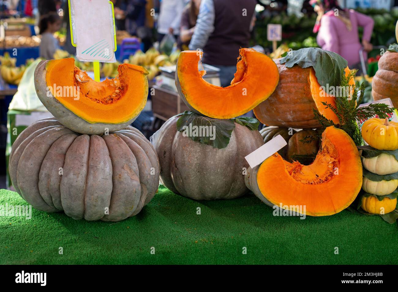 Pumpkin cut in the middle Orange colored pumpkin Stock Photo Alamy