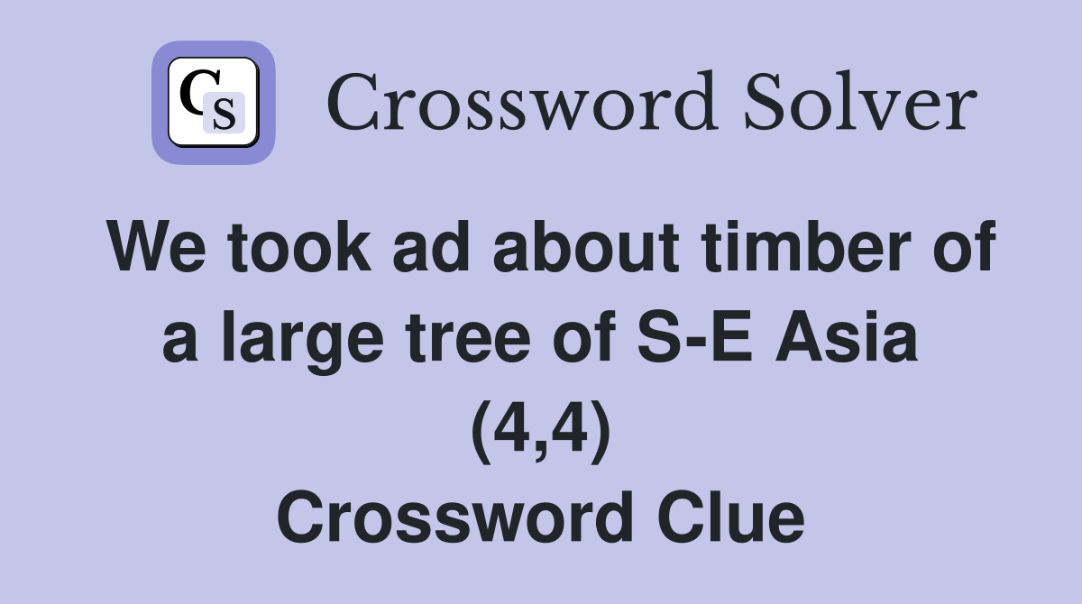 We took ad about timber of a large tree of S E Asia (4 4) Crossword
