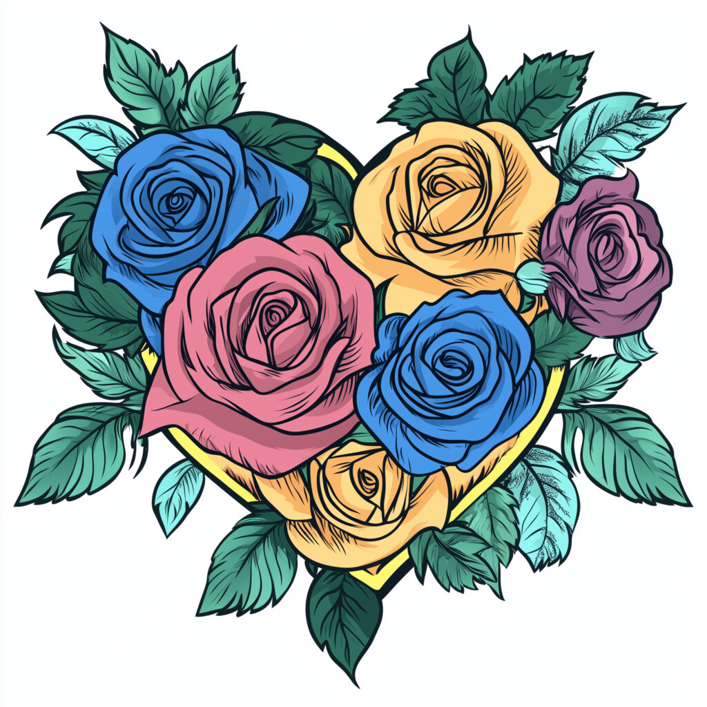 Pretty heart of flowers and leaves Flowers vegetation Coloring