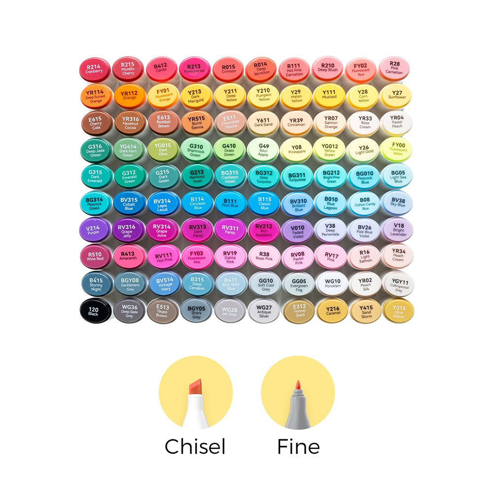 Ohuhu Oahu Series Alcohol Based 100 1 Basic Colors with Colorless Bl