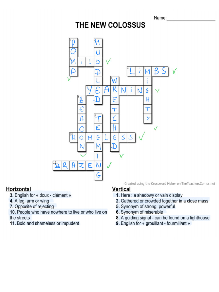 Crossword Puzzle The New Colossus PDF