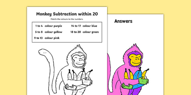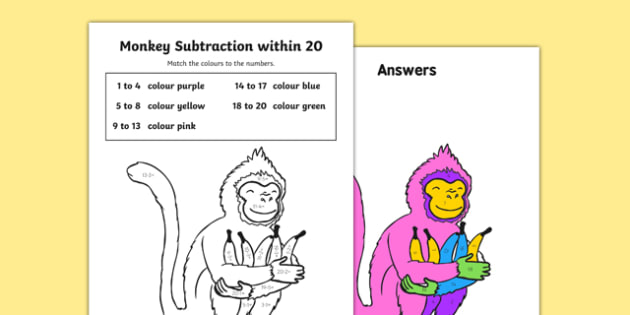 Colour Subtraction from 20 Monkey Worksheet / Worksheet