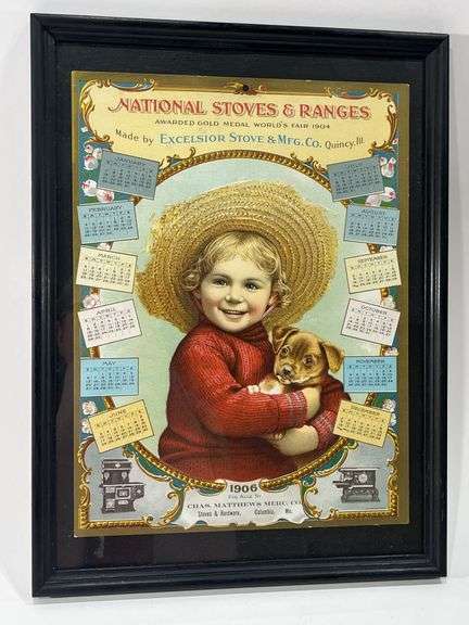 VTG Framed National Stoves Ranges Columbia MO Calendar Advertisement