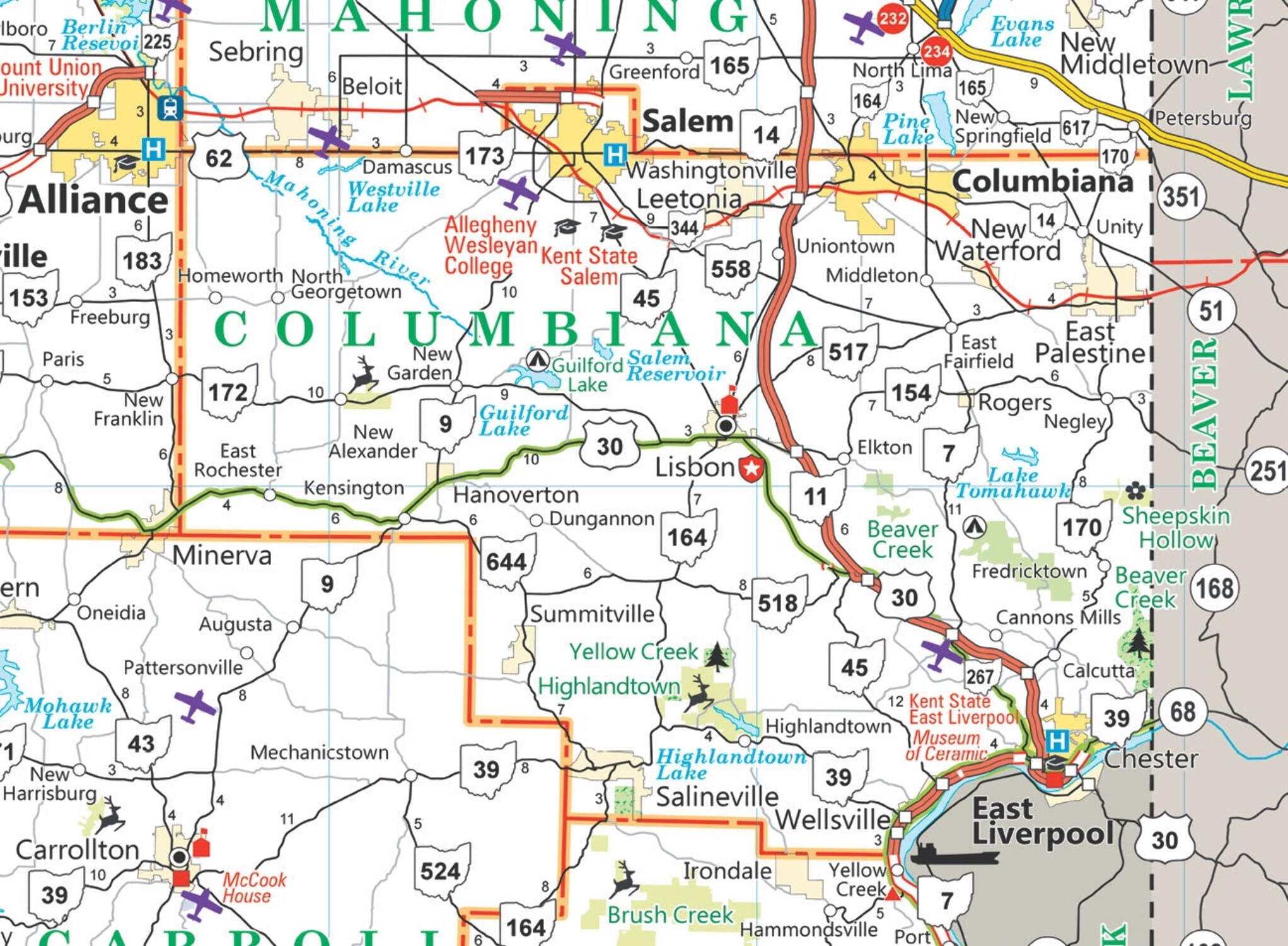 Columbiana County Ohio Map Poster Picture Photo Print Banner East