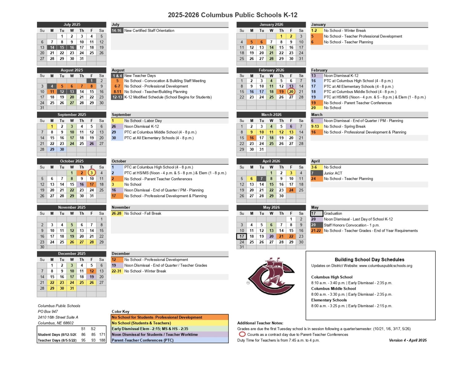 Columbus Public Schools NE Calendar 25 26 Revised pdf EduCounty