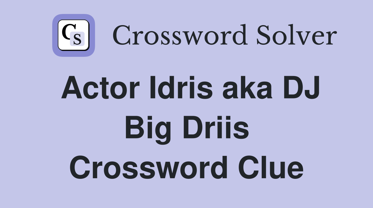 Actor Idris aka DJ Big Driis Crossword Clue Answers Crossword Solver