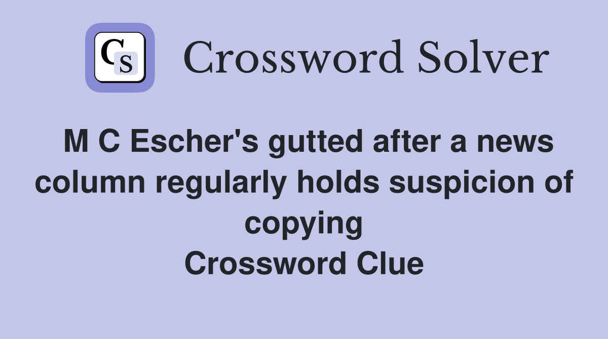 M C Escher #39 s gutted after a news column regularly holds suspicion of