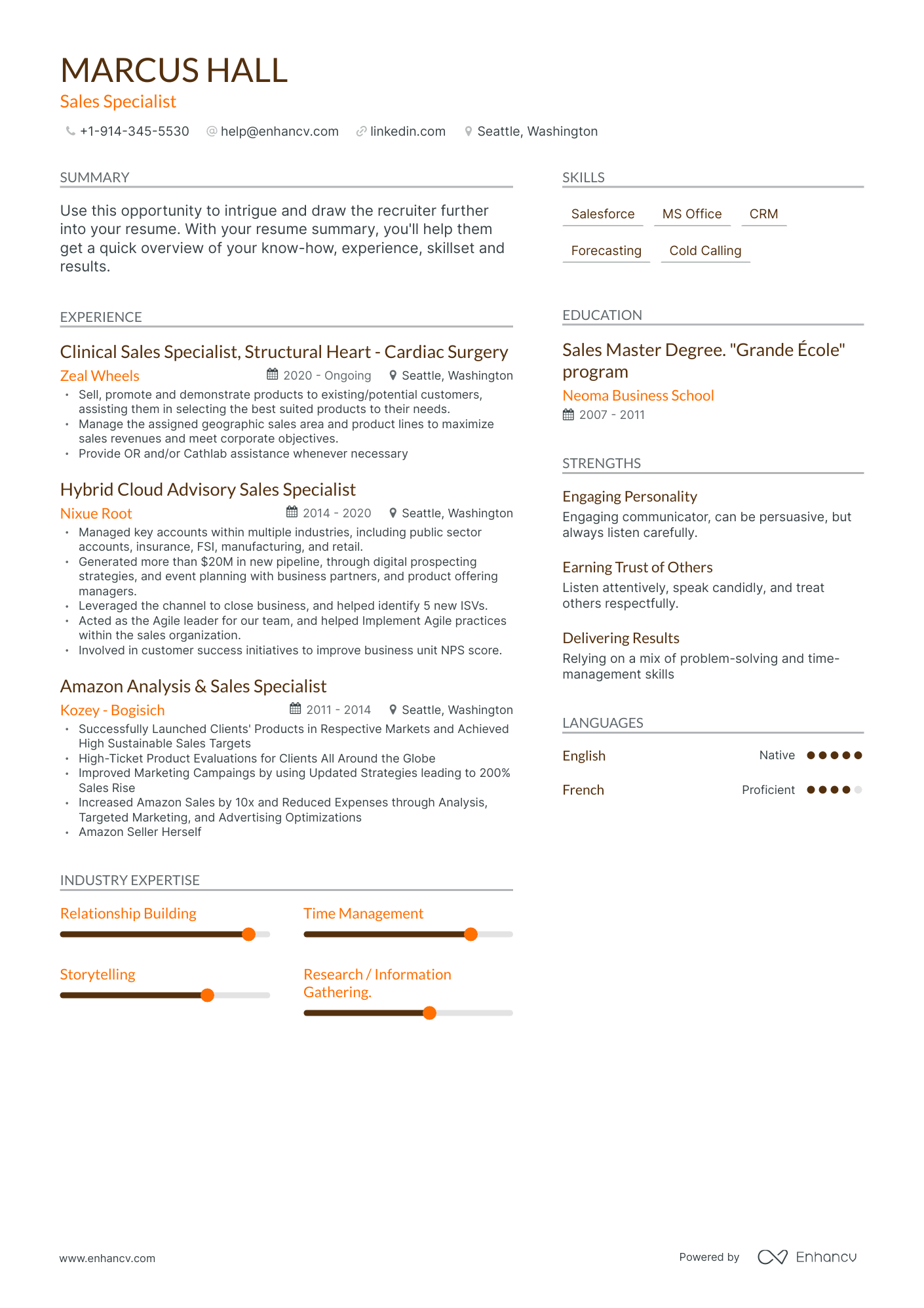 Sales Specialist Resume Examples Guide for 2023 (Layout Skills