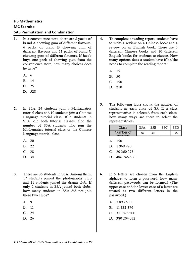 Mc5a5 Permutation Combination PDF