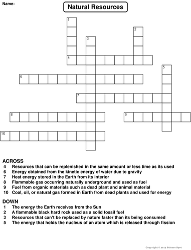 Renewable and Nonrenewable Natural Resources Crossword Puzzle