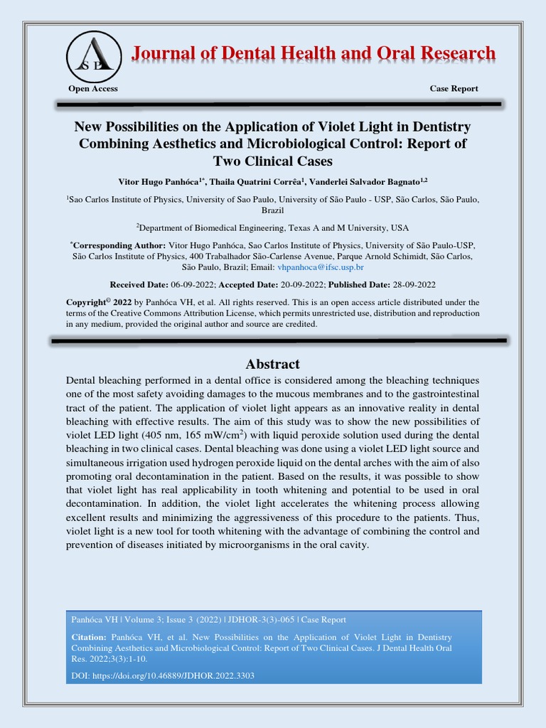 New Possibilities On The Application of Violet Light in Dentistry