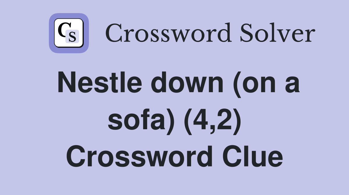 Nestle down (on a sofa) (4 2) Crossword Clue Answers Crossword Solver