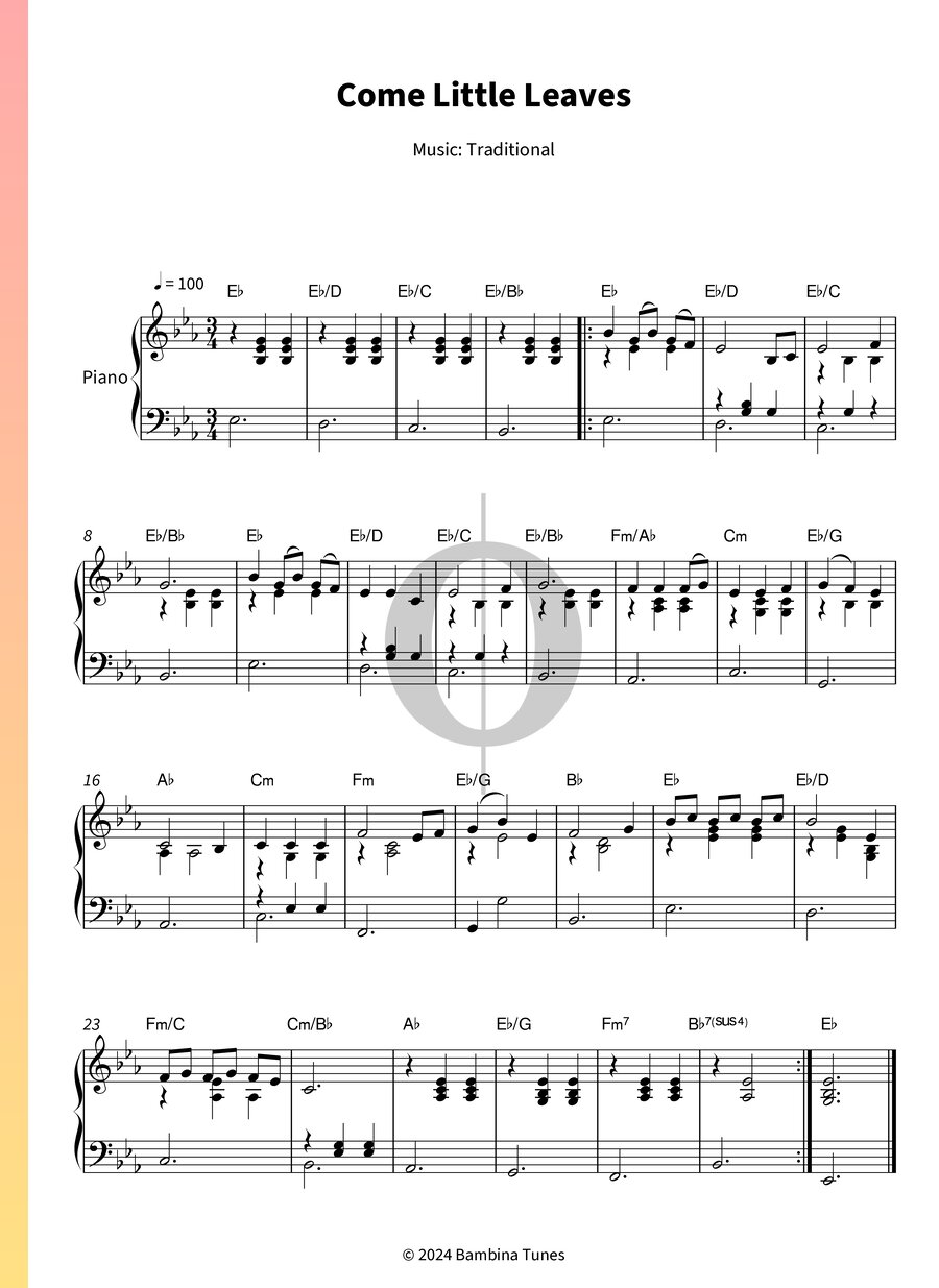 Come Little Leaves (Anonymous) Piano Sheet Music OKTAV