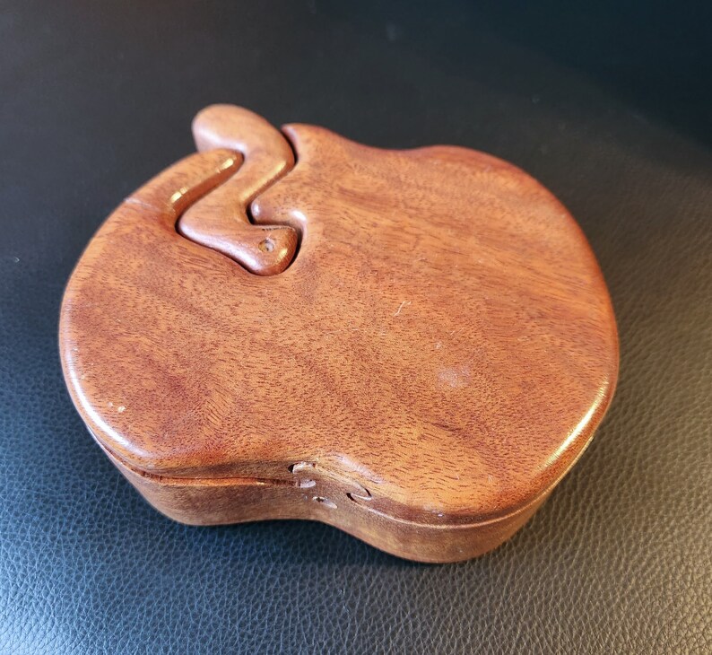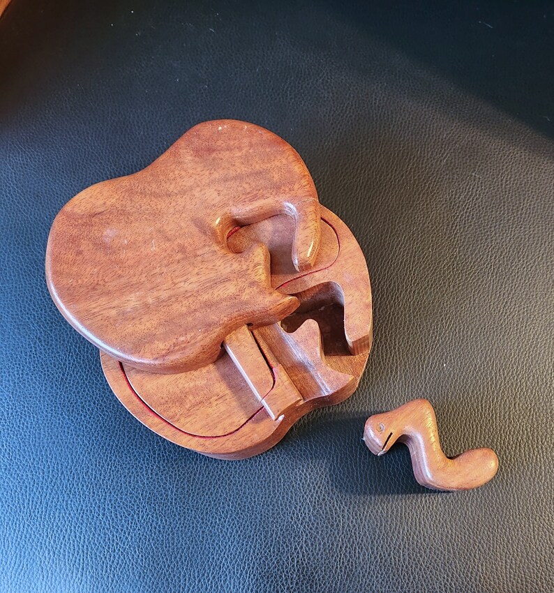 Vintage Wood Carved Apple Jewelry Box Puzzle With Worm Key Etsy UK
