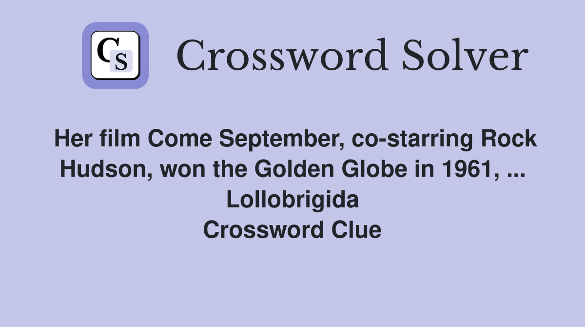 Her film Come September co starring Rock Hudson won the Golden Globe