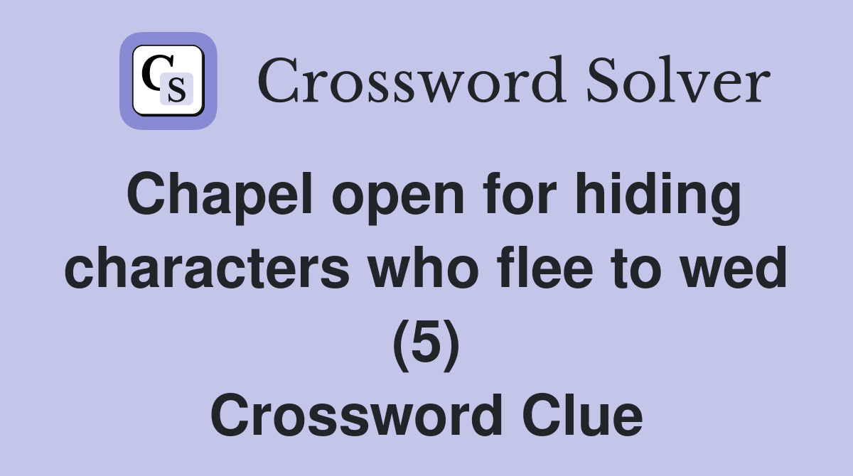 Chapel open for hiding characters who flee to wed (5) Crossword Clue