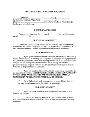 EXCLUSIVE AGENT COMEDIAN AGREEMENT Doc Template pdfFiller