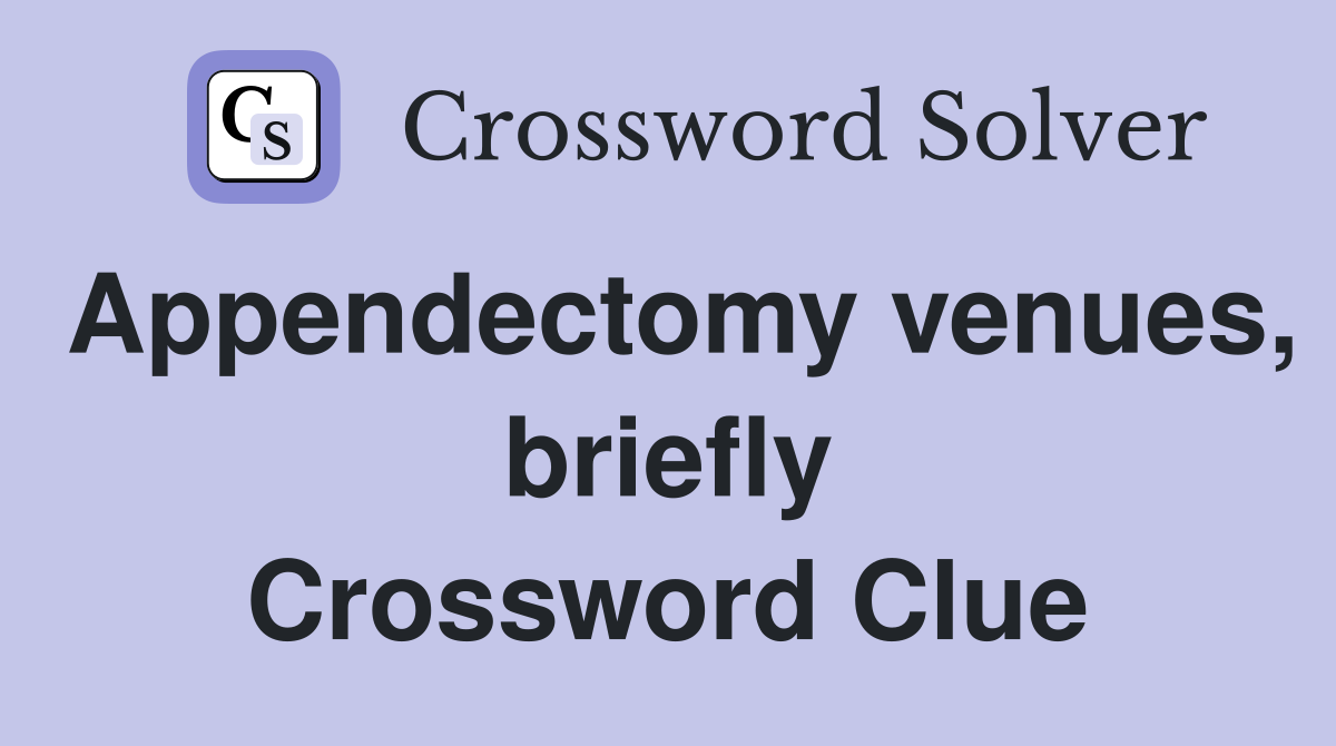 Appendectomy venues briefly Crossword Clue Answers Crossword Solver