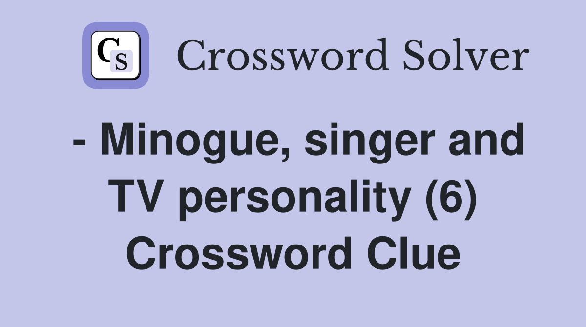 Minogue singer and TV personality (6) Crossword Clue Answers