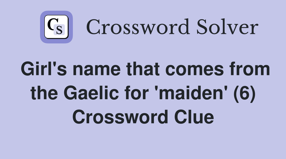 Girl s name that comes from the Gaelic for maiden (6) Crossword