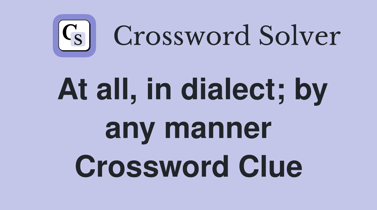 At all in dialect by any manner Crossword Clue Answers Crossword