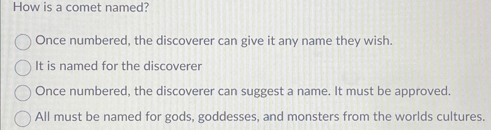 Solved How is a comet named?Once numbered the discoverer Chegg com