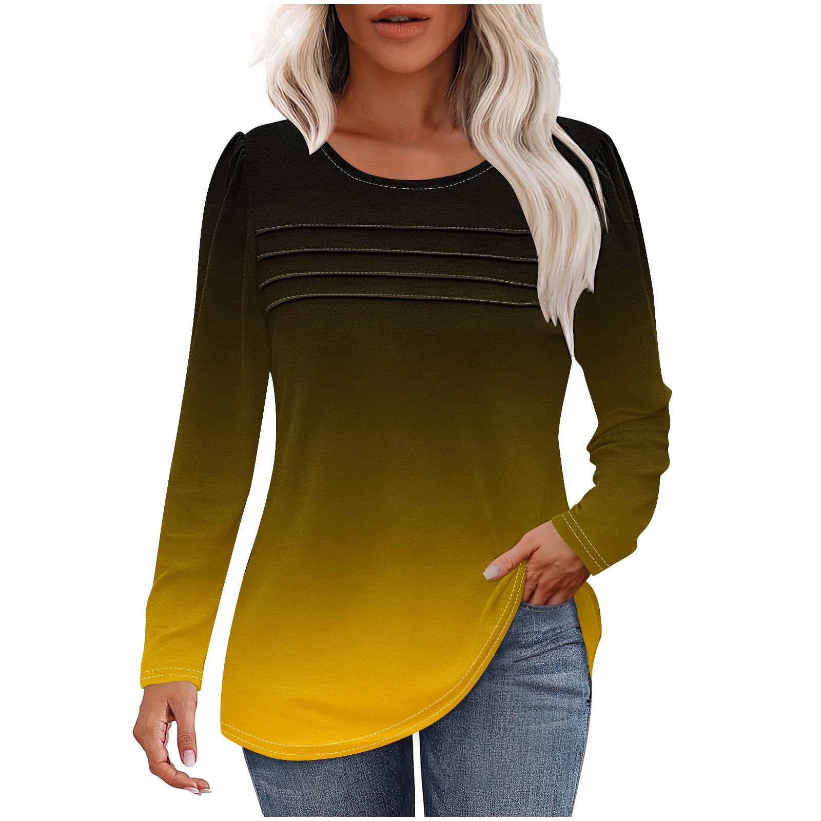 aidice Womens Tops Casual Long Sleeve Round Neck Comfy Fitting Shirts