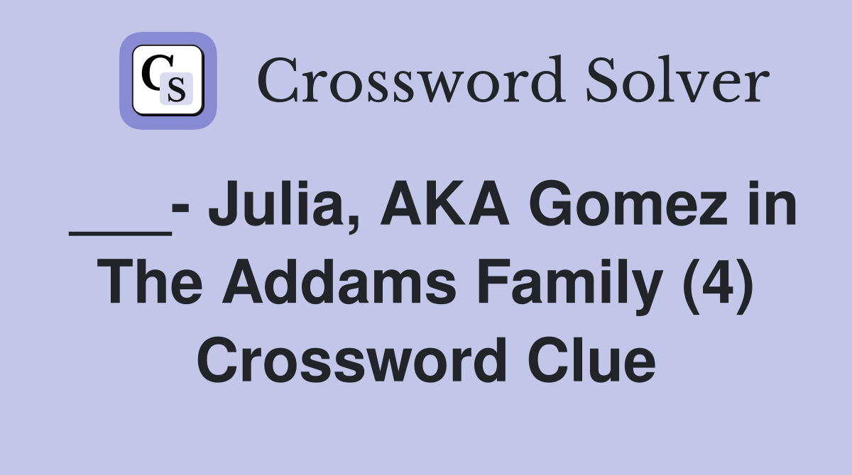 Julia AKA Gomez in The Addams Family (4) Crossword Clue Answers