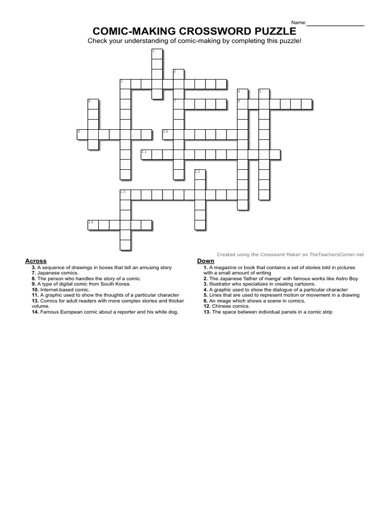 Comic Making Crossword PDF