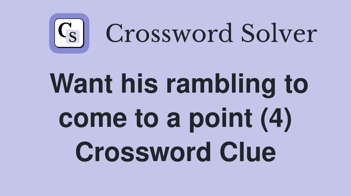 Want his rambling to come to a point (4) Crossword Clue Answers
