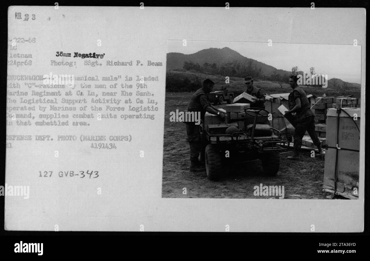 A quot mechanical mule quot is being loaded with quot C quot rations by members of the